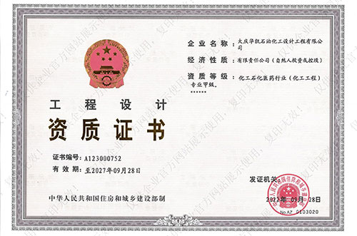 我公司具有化工工程專業(yè)甲級,石油及化工產(chǎn)品儲運、煉油工程、管道輸送、油田地面、制漿造紙工藝、城鎮(zhèn)燃氣工程、建筑工程乙級設(shè)計資質(zhì),石化、建筑乙級咨詢資質(zhì),并通過了ISO9001質(zhì)量管理體系的認證、環(huán)境管理體系認證和職業(yè)健康安全管理體系認證,具有Ⅰ、Ⅱ、Ⅲ類壓力容器設(shè)計資格證及壓力管道設(shè)計資格證。